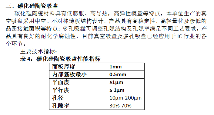 除此之外,本單位還生產(chǎn)碳化硅陶瓷手臂,碳化硅陶瓷托盤等高精密部件,用于IC制造行業(yè)的硅片傳輸及刻蝕機(jī)用晶圓的承載,為IC制造業(yè)提供支撐。